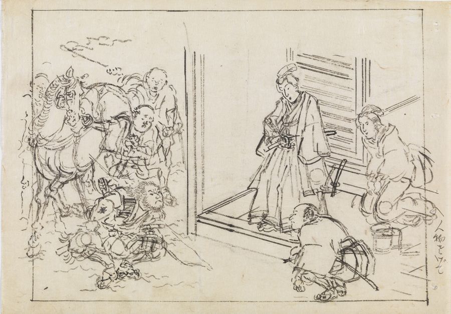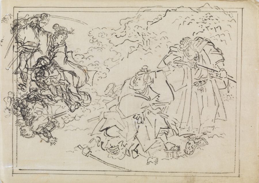Utagawa Kuniyoshi (1797-1861)- Original preparatory drawing for a small novelette.