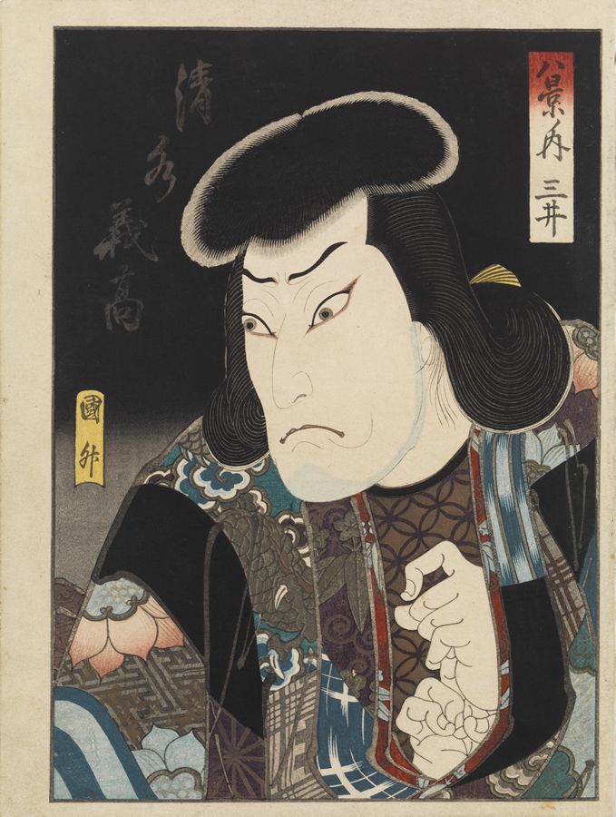 Toyohara Kunichika (1835-1900)- Ichikawa Sadanji I as the Fishmonger Fukashichi. From the series Jidai sewa haiyu kagami (Mirror of Actors in Tales of Modern History). 1883.