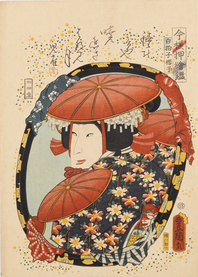 37.6 x 25 cm. Osaka kagami, no. 105; Matsudaira, Sadanobu, no. 87; Schwaab, Osaka Prints, no. 194. Fine impression with metallic printing. Fine colour. Very good condition.