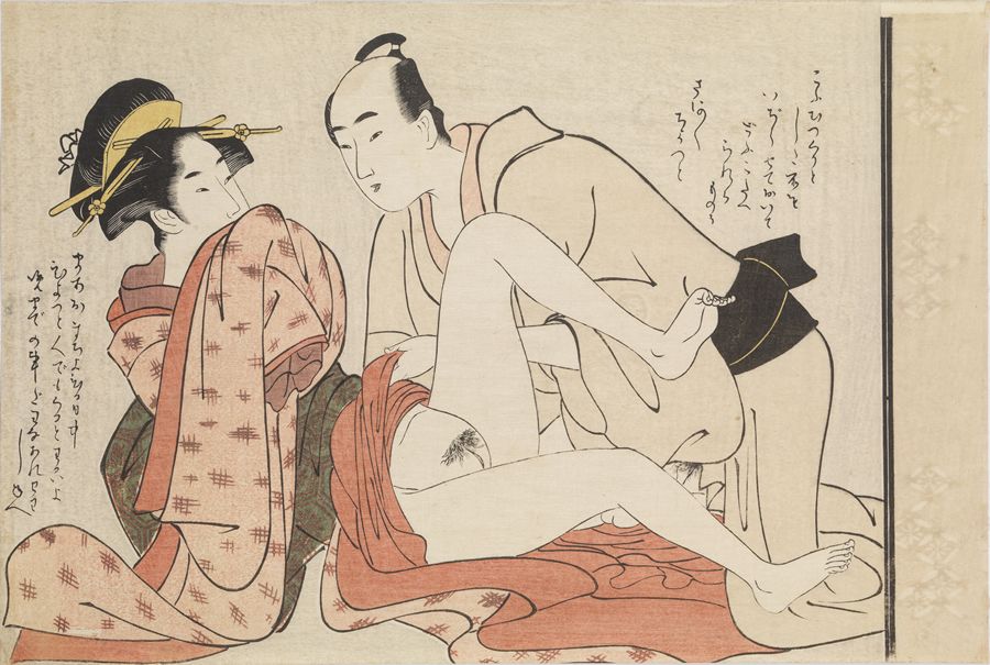 Isoda Koryusai (active ca. 1764-1788)- Sideways (Ogo). From the series Shikido torikumi juni awase (Collection of Twelve Bouts in the Way of Love). Circa 1776.