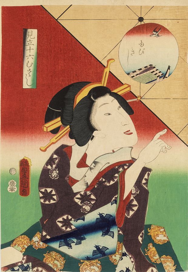 Utagawa Kunisada (1786-1864)- Pointing (Yubi sashi). From the series Juroku Musashi no uchi (From the Game Sixteen Musashi). 1862. Oban.