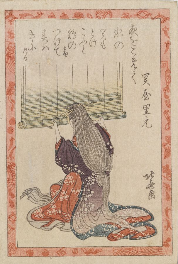 Totoya Hokkei (1780-1850)- A Woman Standing on a Balcony. From the series Kokin kyokasen (A Selection of Ancient and Modern Kyoka Poems). Circa 1830s