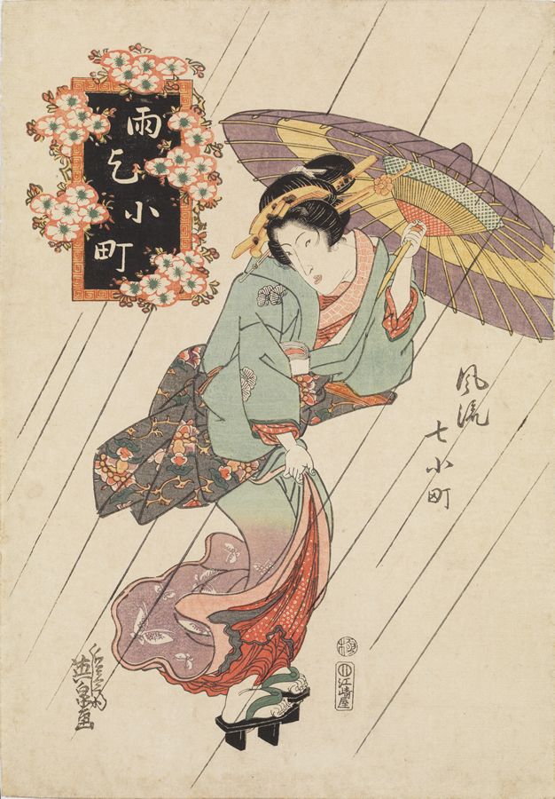 Keisai Eisen (1790-1848)- Amagoi Komachi Rain Praying Komachi (Amagoi Komachi) from the series Furyu nana Komachi (The Elegant Seven Komachi). Circa 1830.