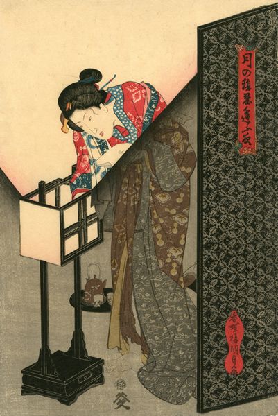 Utagawa Kunisada (1786-1864)- A Beauty Putting Out a Floor Lamp. From the series Tsuki no kage shinobiau yo (Secret Meetings by Moonlight).