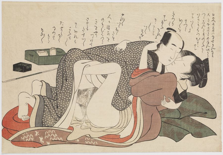 Isoda Koryusai (active ca. 1764-1788)- Sideways (Ogo). From the series Shikido torikumi juni awase (Collection of Twelve Bouts in the Way of Love). Circa 1776.
