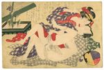 Oban. 25.7 x 38.2 cm. Fine impression, colour and condition. Faint centrefold. Other designs from this untitled series are in the Rijksmuseum, Amsterdam (see Japanese Sexual Imagery, nos. 58a and 58b).